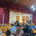 Obwohl genauso viele Leute mitsteigerten als sonst, konnte das für größere Veranstaltungen ausgelegte Trachtenheim daher nicht ganz ausgefüllt werden. Das tat aber der Stimmung und der Spenden- bzw. Steigerungsbereitschaft bei der kurzweiligen Veranstaltung keinen Abbruch. Josef Wörndl fungierte auch diesmal wieder gekonnt und humorvoll als Versteigerer und konnte eine Vielzahl an einfallsreichen Spenden unter die Leute bekommen. Für Abwechslung sorgte er zwischendurch mittels einigen Witzen sowie einem humoristischen Gedicht, welches aktuelle politische Themen wie die Energiewende aufgriff.