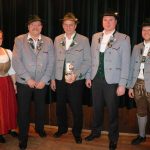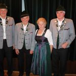 Bericht und Fotos: Heinrich Rehberg – u.a.: Eine Frau und drei Männer – 220 Jahre Erfahrung. Helmut Heller (zweiter von links) und Rita Aicher erhielten beim Vereinshoagascht des Trachtenvereins „Die lustigen Wildenwarter“ im gut besuchten der Schlosswirtschaft das Ehrenzeichen für 60-jährige Vereinstreue, Peter Stoib-Gaishacken (links) und Johann Stoib-Brandenberg (rechts) das Ehrenzeichen für ein halbes Jahrhundert.