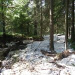Nach dem Hochwasser 2021 – Maiswandgraben: Rund 50 Meter oberhalb der Verrohrung im Bischofswiesener Ortsteil Winkl war das Geschiebe im Maiswandgraben nach dem Unwetter im Jahr 2021 zum Stehen gekommen. Foto: Wasserwirtschaftsamt Traunstein