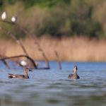 Bei wechselhaften Wetter gab es an der Prienmündung einiges zu entdecken. Die fliegende Mittelmeermöwe brütet derzeit noch erfolgreich, während der Höckerschwan sein Gelege direkt am Ufer aufgeben musste. Die beiden männlichen Schnatterenten werden wohl auch Junggesellen in der Saison bleiben, während die Knäkente hoffentlich den Brutpartner unterstützt. Heuer konnte ich schon ausgiebig das erfolgreiche Werben der Knäkenten an der Prienmündung beobachten.