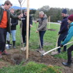 Der erste Birnbaum wird eingepflanzt.