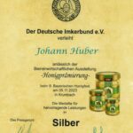 Geschäftsführer Johann Huber von der Bio-Käserei Anderlbauer in Frasdorf wurde bei der Bayerischen Honigprämierung in Krumbach mit der Silbermedaille ausgezeichnet. Die Ehrung erfolgte im Rahmen des 9. Bayerischen Honigfestes im November letzten Jahres. Der Deutsche Imkerbund e.V. verlieh ihm diese Auszeichnung als Anerkennung der qualitativ hochwertigen Imkerarbeit seines Betriebes.