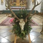 Pfarrer Janßen erinnerte in seiner Predigt daran, dass auch der heilige Hubertus, wie St. Christopherus und St. Barbara, als lediglich legendenhafte, geschichtlich nicht belegbare Gestalten aus dem Heiligenkalender gestrichen wurden. Die Volksfrömmigkeit und – bei Hubertus vor allem die Anhänglichkeit der Jäger – habe es aber geschafft, das Andenken an die Heiligen zu erhalten und ihren Festtag weiter zu begehen. Der heilige Hubertus soll im achten Jahrhundert im Gebiet der waldreichen Ardennen im heutigen Belgien gelebt haben. Während er sich als Angehöriger der Oberschicht bereits zum Christentum bekannte, lebten in den unermesslichen Wäldern noch viele Menschen, die fest an die alten Gottheiten glaubten. Nach dem bekannten Jagderlebnis, bei dem dem schussbereiten Jäger Hubertus der Hirsch mit dem Kreuz inmitten des Geweihs erschien, wandelte er sich vom wilden Jäger zum Missionar und bekehrte in der Folge seine heidnischen Ardennenjäger. Der Erfolg war so groß, dass er in der Region und später „weltweit“ quasi nahtlos als Nachfolger der römischen Jagdgöttin Diana übernommen wurde. Verschiedene Wunder, die mit der Jagd, mit der Tollwut und den wilden Tieren zusammenhingen, wurden mit Hubertus in Verbindung gebracht. „Hubertus ist mit einem schweren Schicksal, dem Tod seiner Frau fertig geworden, er hat versucht diesen Schicksalsschlag mit verstärkter Jagd zu überwinden und musste schließlich erkennen, dass dies kein richtiger Weg war“, schloss Pfarrer Janßen. Nach der Messe trafen sich die Jägerinnen und Jäger zum Schüsseltreiben im Gasthaus Kampenwand in Aschau.