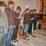 „Herbst ist Erntezeit, das Erntedankfest der Bauern haben wir bereits gefeiert“, so Pfarrer Paul Janßen bei der Hubertusmesse in der Aschauer Pfarrkirche. „Heute ist das Erntedankfest der Jäger“. Ungewohnte Töne durchdrangen das voll besetzte Gotteshaus: Acht Parforcehörner der Inntaler-Jagdhornbläser spielten unter der Leitung von Anton Liegl und Heinz Portenhauser die Hubertusmesse in B. Die Jägervereinigung Rosenheim hatte zur Hubertusmesse geladen und aus dem ganzen Landkreis fanden sich Frauen und Männer im Lodengewand in Aschau ein. Bereits vor der Kirche wurden die Ankommenden von einem Spalier mit Fackelträgern empfangen, einige der Jäger führten auch ihre Jagdhunde und Jagdfalken mit, um sie mit in den Erntedank einzubinden.