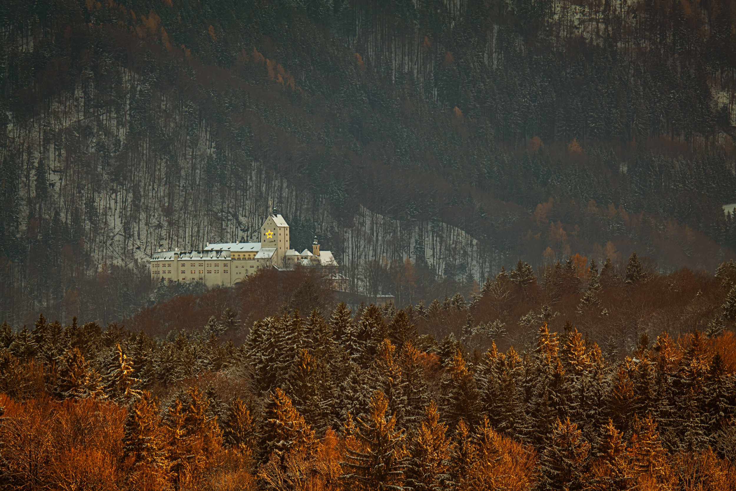 Schloß Hohenaschau mit leuchtendem Weihnachtsstern