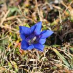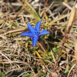 Auf den Wiesen herrscht zwar ein Braunton vor, aber man findet neben vielen Frühlingsenzianen auch schon einige Clusius Enziane und weitere Blumen, etwa die Witwen-Blume oder der Ochsenkopf.