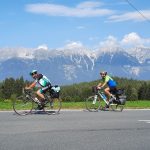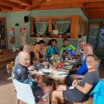 Der zweite Tag begann recht flach bis Hall i. Tirol. Ab da begann der lange Anstieg auf der alten Römerstraße bis hin zum 1.370 m hoch gelegenen Brennerpass. Über Ampass und Patsch bis zum Etappenziel nach Steinach am Brenner führte die mit herrlichen Ausblicken gespickte Strecke. Bis dahin waren es zwar nur 55km, aber schon 850 Höhenmeter. Die Gruppe war recht fit, insbesondere der 79-jährige Willi beeindruckte mit seinem 40 Jahre alten Fausto Coppi Rennrad die übrigen Mitradler. So wurde schon recht früh die Unterkunft in Steinach erreicht. Was tun mit der restlichen Zeit? Kurzentschlossen hielt Josefine eine Gymnastikstunde mit Mobilisations- und Dehnungsübungen auf der Hotelwiese ab, um die strapazierten Muskeln für die nächsten Tage wieder auf Vordermann zu bringen. Im beheizten Schwimmbad konnten sich dann alle vollends entspannen.