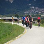 Tags darauf regnete es beim Aufbruch. Eigentlich hätte eine Alternativroute für die anspruchsvolleren Radfahrer über Kaltern und den 1.362m hoch gelegenen Mendelpass bis zum Ziel nach Trento führen sollen, das fiel dann leider im wahrsten Sinne des Wortes ins Wasser. So blieb die ganze Gruppe die 75km zusammen auf dem Etschradweg bis Trento. Zu regnen hörte es zum Glück kurz nach Bozen auf, aber dafür forderte ein heftiger Gegenwind die ganze Kraft der Radler. Von Trento waren alle sehr begeistert, zumal es den meisten unbekannt war. Die historische Altstadt mit seiner Kathedrale im Zentrum, der großen Piazza Duomo und den vielen Palazzi ist absolut sehenswert.