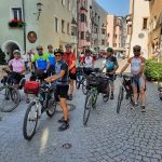 Aufgesattelt waren Tourenräder, Rennräder und Mountainbikes, alle ohne Strom und mit eigenem Gepäcktransport auf dem Rad. Der Start erfolgte frühmorgens bei tiefstem Nebel am Rosenheimer Bahnhof. Nach einer kurzen Sicherheitsunterweisung durch Reinmund ging es 95km am Innradweg entlang bis zum ersten Tagesziel nach Schwaz. In Kufstein zur Mittagspause war der Nebel verschwunden und die Sonnenstrahlen erwärmten die hungrigen Radler. Ein zweiter Kaffee-Stopp folgte 30 km später in der historischen Altstadt von Rattenberg. Nochmal 20km und die Unterkunft war erreicht.