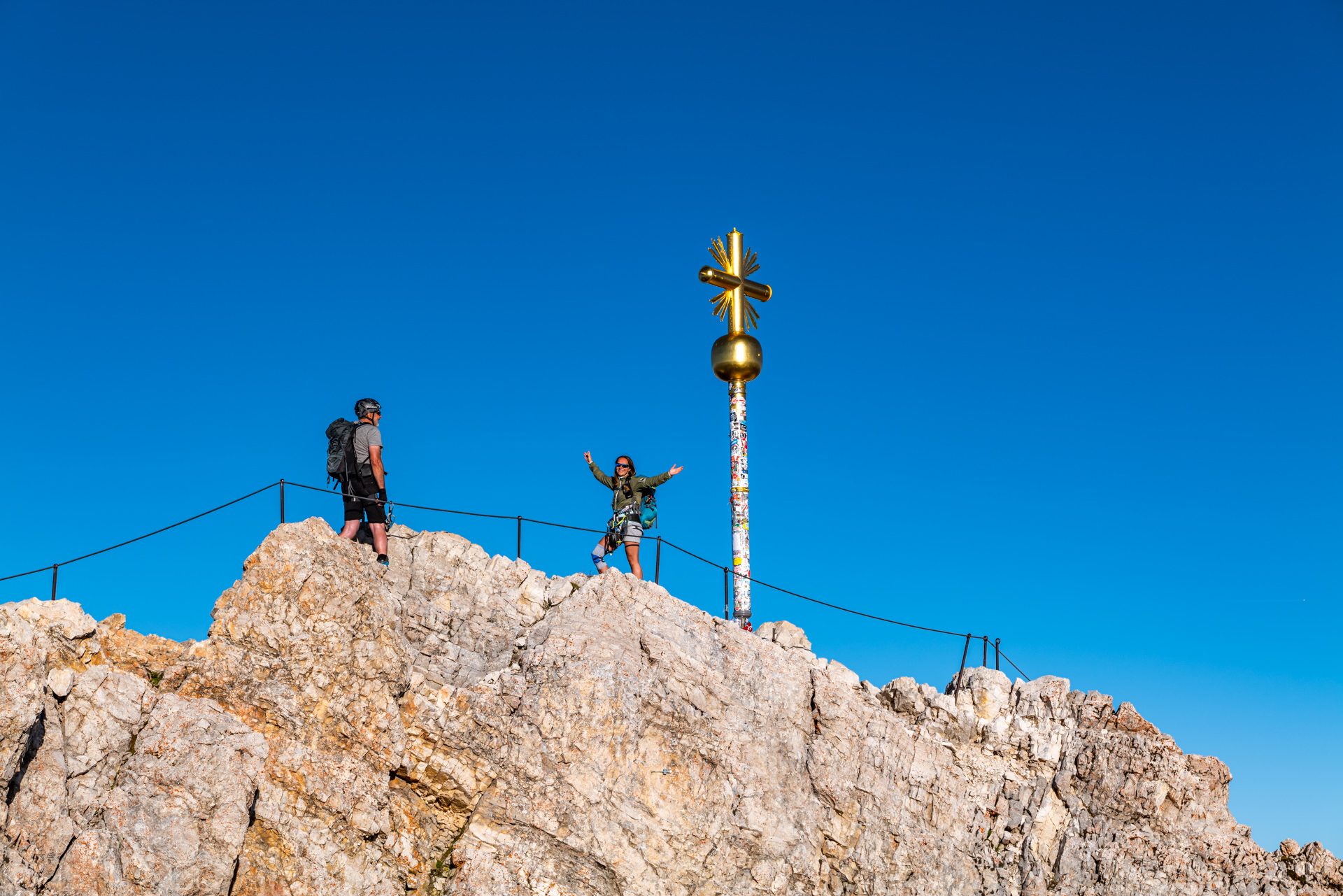 GipImpressionen vom höchsten Gipfel Deutschlands – der Zugspitzefelkreuz auf deutscher Seite