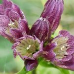 Blaue Farbpunkte bringt der giftige Eisenhut und die unscheinbare Waldwicke. Auf der Roßalm ist im August der Ungarischer Enzian der Star und bei Hummeln heiß begehrt. Ein Blick in das Innere der wundervollen Blüte offenbart deren Anziehungskraft für Hummeln.