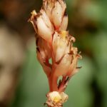Derselbe Blickwinkel ist bei der nächsten Blume erst einmal ungewohnt, aber der unscheinbare Fichtenspargel kann auch ohne Blattgrün im Sonnenlicht leuchten.