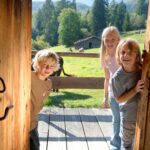 FLM_Glentleiten_Gerard_Almtür1.jpg: Neugierig wie diese Kinder können alle Jungen und Mädchen auf das Programm während der Sommerferien sein. Es verspricht Spiel, Spaß und Freude am Werkeln!