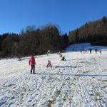 Aber am Kaiserblick ist Skibetrieb. Am Kaiserblicklift ist einiges los, am Zwergerllift versuchen die Kleineren ihre Künste und dazwischen tummeln sich die Schlittenfahrer. Auch die Skischule ist geöffnet und auf der Terrasse der Kaserblick-Stub`n sitzen auch Spaziergänger in der strahlenden Sonne – alles voll.