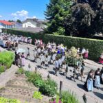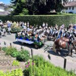 Zu den vielen Trachtlerinnen und Trachtlern, Fahnenabordnungen und Musikanten meldeten sich noch 27 Kutschen, Motiv- und Trachtlerwägen sowie Vorreiter für den nachmittäglichen Festzug an. Vor dem vormittäglichen Gottesdienst hieß Gauvorstand Pankraz Perfler die Aktiven und Besucher willkommen und dankte für das schöne Miteinander. Pfarrer Herbert Aneder vom Pfarrverband Pfaffenhofen-Hochstätt und Pfarrer Dr. Richard Graupner aus Großkarolinenfeld gingen in ihren ökumenischen Gebeten und Reden auf das Verbindende und Gemeinsame von Glaubens- und Brauchtumspflege ein – wie schon ein Jahr zuvor beim Trachtenverein Hochstätt und gleichem Pfarrverband. Die musikalische Gestaltung übernahmen die Festmusikkapelle Hochstätt sowie die örtlichen Chöre unter der Leitung von Leni Feichtner.