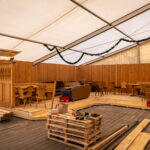 Alle packen mit an und die Kindergruppen konnten heute bereits auf der Bühne des Festzeltes ihre erste Probe abhalten….