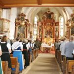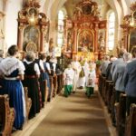 Nicht wie gewollt und geplant eine Fußwallfahrt nach Schwarzlack machten, sondern wegen der Wetterverhältnisse einen Dank- und Bitt-Gottesdienst feierten die Trachtlerinnen und Trachtler des Bayerischen Inngau-Trachtenverbandes.