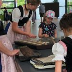 Auch heuer kamen rund 25 Teilnehmer zu den „Innviertlern“, um die vielfältigen Aktivitäten der vereinseigenen Kinder- und Jugendgruppe einmal unverbindlich kennenzulernen. Je nach Interesse konnte man sich an einfachen Tänzen beteiligen oder bei Singspielen mitwirken. Das engagierte Team um Jugendleiterin Steffi Schubert hatte sich allerhand einfallen lassen, den Kindern ein buntes und kurzweiliges Programm zu bieten. Während die Buben das Schuhplatteln probieren durften, ließen sich die Mädchen passend zum Dirndlgwand schön frisieren. Sehr beliebt war bei den Teilnehmern auch das Angebot, mal ein paar Schläge am Hackbrett auszuprobieren oder an der Zither zu zupfen. Und schon nach einer kurzen Anleitung von Anna und Leonhard Wimmer konnte die erste Musikaufführung des „Kinder-Orchesters“ hören lassen.