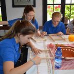 Monika Hutterer, Vorsitzende der „Kreuzstraßler“ Patersdorf und ehemalige Bezirksjugendleiterin, organisierte die Verpflegung für das Wochenende. Am Samstag hieß es früh aufstehen, denn schon um 7 Uhr gab es Frühstück. Am Vormittag fand der Brotbackkurs statt, bei dem jeder ein eigenes Zöpfl und ein kleines Brot backen durfte. Die Referentin Marita Sammer erklärte sämtliche Arbeitsgänge verständlich und zwischendurch erläuterte sie ausführlich die Geschichte der Brotentstehung vom Getreidebrei bis zum heutigen Laib. Nach dem Mittagessen folgte der zweite praktische Teil „Vom Flachs zum Leinen“. Der Weg führte zum Flachsfeld und zum Brechhaus, wo die Referentin Andrea Schuster-Haselberger Aussaat, Ernte und die Arbeitsgänge Auslegen, Trocknen, Brechen, Riffeln bis zum geflochtenen „Haar“ zeigte. In der großen Stube des Kappl-Hofs informierte sie über das Spinnen, den Webstuhl, den Kammerwagen und die „Rockaroas“. Jeder durfte selbst Hand anlegen und erfahren, wie mühsam es  war, bis man endlich das fertige Leinen in den Schrank legen konnte. Zum Schluss webten alle Teilnehmer ein Armbändchen, das sie als Erinnerung mitnehmen durften. Nach einer kurzen Pause brachte eine Museumsralley noch einmal Schwung und Bewegung. Die fünf zusammengelosten Gruppen wetteiferten um das schnellste richtige Ergebnis. Dies förderte die Gemeinschaft  zusätzlich, so dass der Lösungssatz „Zeitreise in die Vergangenheit“  bald erarbeitet war. Am frühen  Abend machte das Musikreferentenpaar Ingrid und Hermann Hupf alte und neue Lieder schmackhaft. Das war zugleich die Einstimmung auf das Grillen am Lagerfeuer hinter dem Raidl-Haus. Spiele, Spaß und Schabernack kamen nicht zu kurz. Dazu gehörte auch, dass einer Jugendleiterin eine riesige Heuschrecke in den Schlafsack gesteckt wurde, die sie erst am Morgen entdeckte.