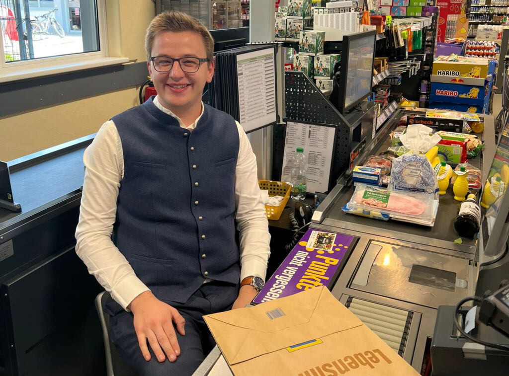 Neubeurer Bürgermeister kassiert bei Edeka für den guten Zweck.