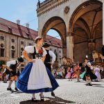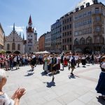 Der 01. Juni 2019 war ein besonderes Datum für die Trachtler des Isargaues. Nach genau 147 Planungstagen, zwei großen Gesamtproben und zahlreichen Proben innerhalb der Vereine war es endlich soweit: Der 1. Isargau Trachten-Flashmob ( = größere Menschenansammlung) wurde in München aufgeführt. Treffpunkt war der Innenhof des Rathauses am Marienplatz. Die Vorfreude war groß, und selbst einige der erfahrenen Tänzer waren nervös. Kein Wunder, denn einen Auftritt wie diesen gab es noch nie in der Geschichte des Isargaues. Nach letzten Absprachen und Vorbereitungen ging es dann in kleinen Gruppen zum Odeonsplatz. Bereits der erste Flashmob war ein voller Erfolg und gut besucht. Anschließend gab es noch zwei weitere am Marienplatz, die den ersten bei weitem an Zuschauern und Begeisterung übertrafen. Die Tänzer waren abwechselnd in Platter- und Volkstanzkreise aufgeteilt. In der Mitte standen die Musiker, die den Auftritt mit Ziach und Tuba tatkräftig begleitet haben.