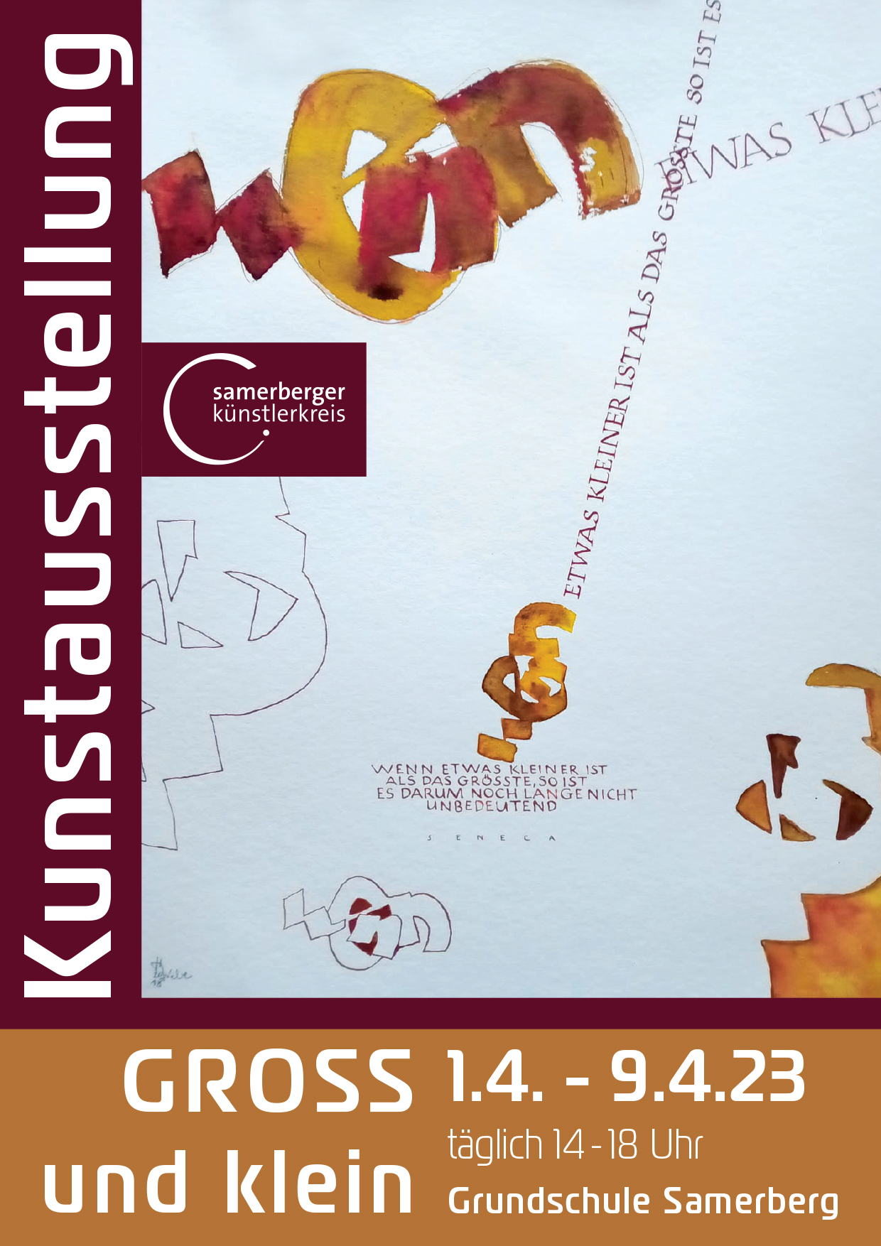 „Groß und Klein” Jahresausstellung des Samerberger Künstlerkreis e.V. vom 1. April bis 9. April 2023 täglich von 14 bis 18 Uhr geöffnet.