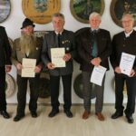 Schützenkommisar Heinz Scheck beendet nach zehn Jahren seine Tätigkeit als oberste Schiedsinstanz in der Königlich privilegierten Feuerschützengesellschaft Aschau von 1607 (FSG Aschau) „Es gab nicht allzu viele vereinsinterne Streitfälle in den vergangenen zehn Jahren, die einer Entscheidung durch den Schützenkommisar bedurften“, zog Heinz Scheck bei der Jahreshauptversammlung in der Schiessstätte eine positive Bilanz seiner Tätigkeit. „Ich habe dieses Amt von Altbürgermeister Kaspar Öttl vor zehn Jahren übernommen und gebe es nun weiter an den zweiten Bürgermeister Michael Andrelang“. Einstimmig beschloss die Versammlung Heinz Scheck zu entlasten und das Amt des Schützenkommisars an Michael Andrelang zu übergeben. Schützenmeister Franz Kiesmüller überreichte dem scheidenden Schützenkommisar eine Urkunde als Dank und Anerkennung für seine Tätigkeit. Das Abzeichen des deutschen und des bayerischen Sportschützenbundes für 50-jährige aktive Mitgliedschaft verlieh Schützenmeister Franz Kiesmüller an Alois Schmid und Josef Ladstätter, das Abzeichen für 40 Jahre erhielt Peter Staudacher. Hedwig Scheck und Wolfgang Kink wurden für 50-jährige Vereinsmitgliedschaft geehrt und Kaspar Öttl für 40 Jahre.