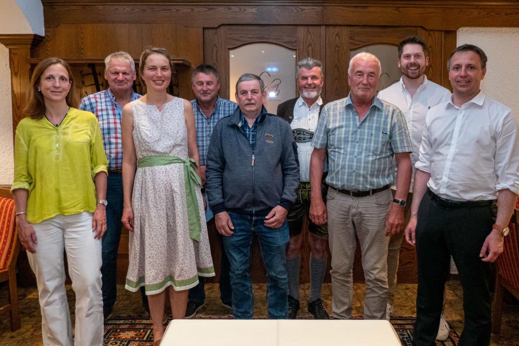 Der Ortsvorsitzende und Zweite Bürgermeister Johannes Weber (zweiter von rechts) freute sich gemeinsam mit dem Stellvertretenden Kreisvorsitzenden und Traunsteiner Oberbürgermeister Dr. Christian Hümmer (erster von rechts) und der weiteren Stellvertretenden Kreisvorsitzenden und Staudach-Egerndacher Ersten Bürgermeisterin Martina Gaukler (erste von links) die Mitgliedschaftsehrungen für die Jahre 2020, 2021 und 2022 vornehmen zu können. Zu den Geehrten gehören unter anderem (weiter im Bild von links) aktiver Landwirt und ehemaliger Obmann des Ortsverbandes Unterwössen im Bayerischen Bauernverband Josef Schuhbeck (2022: 10 Jahre Mitglied), Gemeinderatsmitglied und Sprecherin der Gemeinderatsfraktion des CSU-Ortsverbandes Katharina Wagner (2021: 25 Jahre Mitglied), ehemaliges Gemeinderatsmitglied und aktives Mitglied der Musikkapelle Wössen Anton Aberger (2021: 20 Jahre Mitglied), aktiver Landwirt, ehemaliges Gemeinderatsmitglied, Stellvertretender Vorsitzender der Kreisgruppe Traunstein im Bayerischen Jagdverband e.V. und Vorsitzender des Ortsverbandes Wössen des Sozialverbandes VdK e.V. Josef Kurz-Hörterer (2020: 25 Jahre Mitglied), Gemeinderatsmitglied, ehemaliger Zweiter Bürgermeister, Ehrenvorsitzender des Trachtenvereins d’Rechlberger Oberwössen und Vorsitzender der Privaten Gastgeber im Chiemgau e.V. Bartholomäus Irlinger (2022: 20 Jahre Mitglied), Polizeihauptkommissar a.D., ehemaliger Zweiter Bürgermeister, ehemaliger Kreisrat, Hauptmann der Gebirgsschützenkompanie Wössen/Achental e.V. sowie Vorsitzender des Vorstands der Elektrizitätswerk Oberwössen e.G. Georg Haslberger (2022: 10 Jahre Mitglied). Bild: Ludwig Flug, Unterwössen.