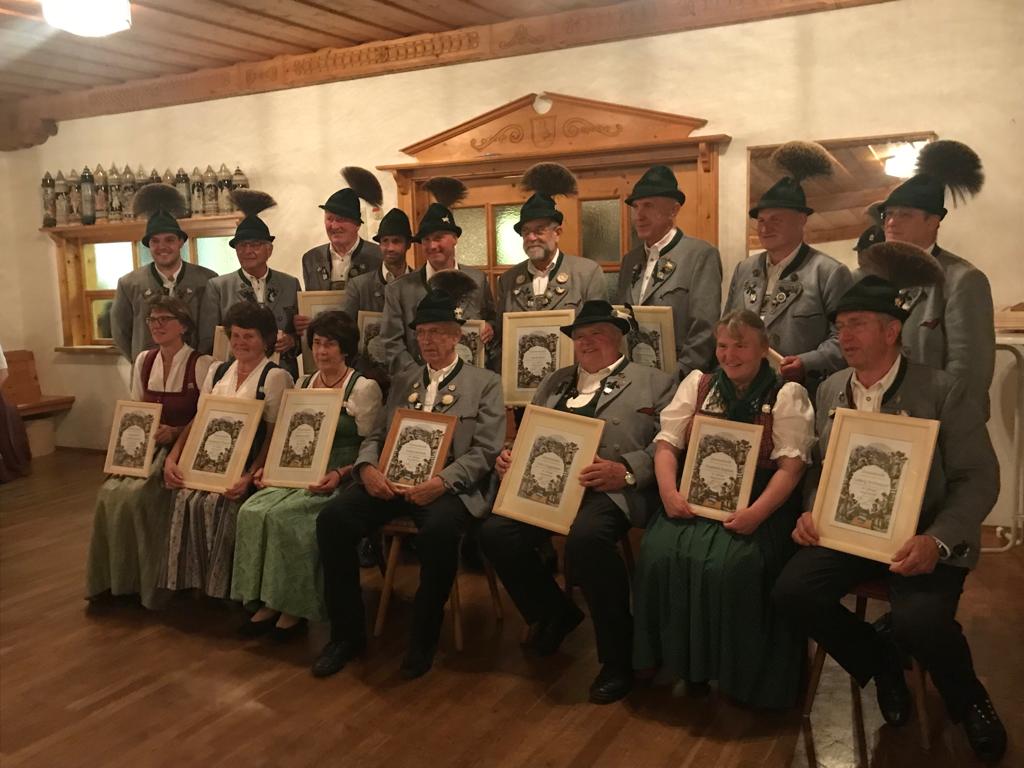 stehend v.links: Stellv. Vorstand Felix Löhmann, Gerhard Ruf (40 J.), Peter Thaurer sen. (40 J.), Florian Obermüller (30 J.), Lorenz Stockinger (30 J.), Jakob Bartl (40 J.), Oskar Oberberger (40 J.), stellv. Vorstand Lenz Obermüller (40 J.), 1. Vorstand Klaus Kollmannsberger. Sitzend v.links: Annemarie Lackerschmid (30 J.), Annemarie Thaurer (40 J.) , Johanna Hartl (40 J.), Erwin Mrotzek (60 J.), Fritz Voggenauer (40 J.), Elisabeth Stephan (30 J.), Ludwig Strohmayer sen. (40 J.). Entschuldigt waren Rupert Schauer und Monika Weyerer (jeweils 40 J.) und Dr. Theo Dume (50 J.).