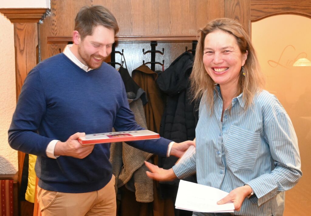 Am Ende ihres Berichts dankte die Sprecherin der Gemeinderatsfraktion des Ortsverbandes Katharina Wagner dem Vorsitzenden und Zweiten Bürgermeister Johannes Weber mit einem kleinen Überraschungs-Präsent. Weber, so Wagner, trage maßgeblich den Ortsverband und entwickle mit seinen Ideen diesen und die Arbeit seiner Vorstandschaft entscheidend weiter. Beispielhaft hierfür nannte sie das Konzept der Ortstermine. Das sah auch der Geschäftsführer des Ortsverbandes Dr. Florian Lesmeister so und ergänzte dass Johannes Weber den Ortsverband und seine Mitglieder mit ihren doch sehr unterschiedlichen Persönlichkeiten, Interessen und Meinungen zusammenhalte.