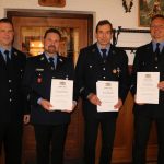 KBI Hochhäuser dankte den drei ausgezeichneten Feuerwehrleuten, sie stellten mit ihrem Wissen, ihrem Können und ihrer Erfahrung das Rückgrat der Feuerwehr dar. Er stellte fest, dass es zum ersten Mal in seiner Laufbahn sei, dass er einen aktiven Bürgermeister zusammen mit seinem aktiven Kommandanten für ihr Engagement auszeichne.