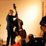 Abschließend wurde es etwas ernsthafter bei „Body and Soul“ aus den 1930er, einer ähnlich angespannten Zeit wie heute, mit allen guten Wünschen für das Publikum. Zum einen Swing pur, zum anderen nahm Henning Sieverts diesmal den Bogen, um quasi an die sonst übliche Klassik in der Sawallisch Villa anzuknüpfen. Bei der Zugabe mit „Our love us here to stay“ konnten alle drei Musiker nochmal ihr auf einander abgestimmtes Zusammenspiel bis zum letzten Ton zeigen.