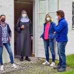 Fotos: Krämmer – Eindrücke vom Vorbereiten der Corona-Teststation in Räumen des Klosters auf der Südseite der Fraueninsel von links: Barbara Lanzinger, Schwester Elisabeth sowie Diana und Armin Krämmer.