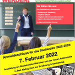 Für den Start in das neue Studienjahr 2022-2023 im September sucht das Staatsinstitut für die Ausbildung von Fachlehrern, Abt. II in München und der Außenstelle in Bad Aibling interessierte Bewerberinnen und Bewerber, die