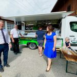 Der im Jahr 2003 im Landratsamt Rosenheim gegründete Verein zur Förderung der Regionalentwicklung im Raum Rosenheim e.V. (RegRo) ist neuerdings mit dem VR-Verkaufsmobil „Frisch vom Hof & Nimm´s RegRonal“ unterwegs. Erstmals war dieses mobile Angebot am vergangenen Samstag beim RegRo-Markt in Rosenheim-Aising mit Biobrot, Biokäse, Geräuchertem, Nudeln, Mehl, Dinzler Kaffee, Freilandeier, Spirituosen, Essig, Öl, Sauerkraut, Gebäck, Rinser-Eis und weiteren Lebensmitteln von heimischen Erzeugern präsent. Zur Eröffnung bedankte sich RegRo-Vorsitzender Sebastian Friesinger bei Christian Bürger von meine Volksbank Raiffeisenbank für die großzügige Unterstützung bei der Anschaffung des Verkaufsmobils, das nunmehr jeden Samstag in der Aisinger Straße 98 von 8 Uhr bis 12 Uhr für regionalen Einkauf zur Verfügung steht. Elisabeth Widauer von der RegRo-Vermarktungs-GmbH „Nimm´s RegRonal“ freute sich über die ersten Kunden, die vielfach überrascht waren vom großen Sortiment im Wagen, im Laden sowie von weiteren regionalen Anbietern und gab bekannt, dass sich bei den Aisinger Samstagsmärken interessierte Direktvermarkter zu einem oder mehreren Terminen anschließen können. Der Verkaufswagen mit Regionalem von Bauern und RegRo ist fortan immer dienstags und mittwochs von 8 Uhr bis 13 Uhr auf dem Ludwigsplatz in Rosenheim anzufinden.