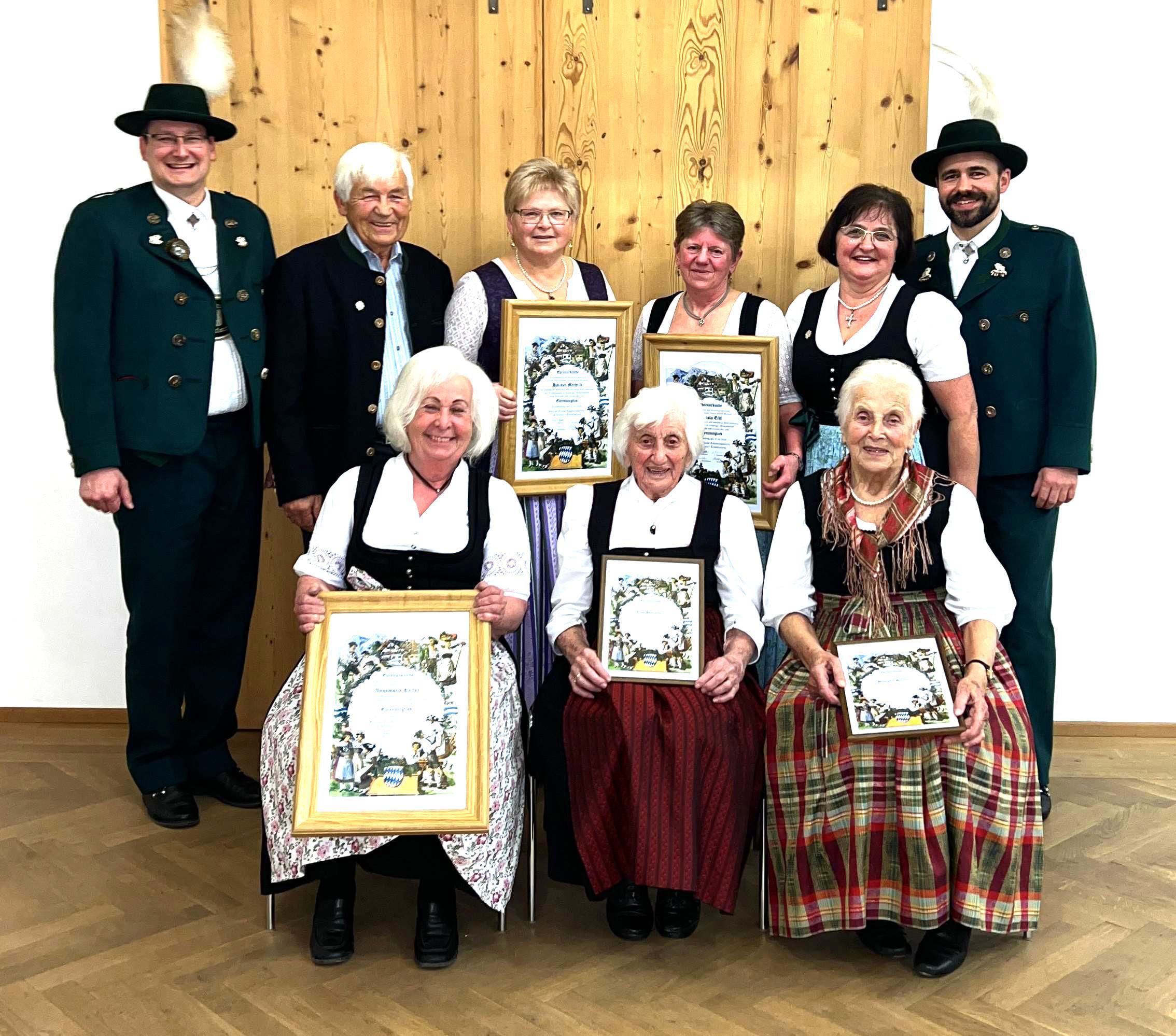 vorne von links: Annemarie Reiter, Rosi Peteranderl und Hilde Holzner Hinten von links: 2. Vorstand Simon Maier, Theo Mayerhöfer, Mechthild Holzner, Christa Eibl, Regine Berger und 1. Vorstand Gregor Huber