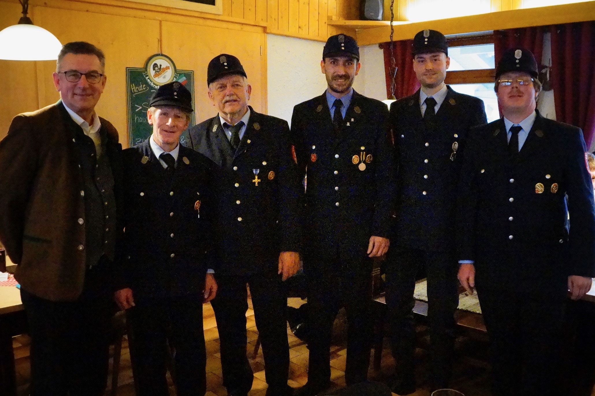 von links: Bürgermeister Georg Huber, Kassier Andreas Stuffer, ehem. Vorsitzender Anton Schober, neuer erster Vorsitzender Martin Deindl, zweiter Vorsitzender Max Binder, Schriftführer Franz Eder