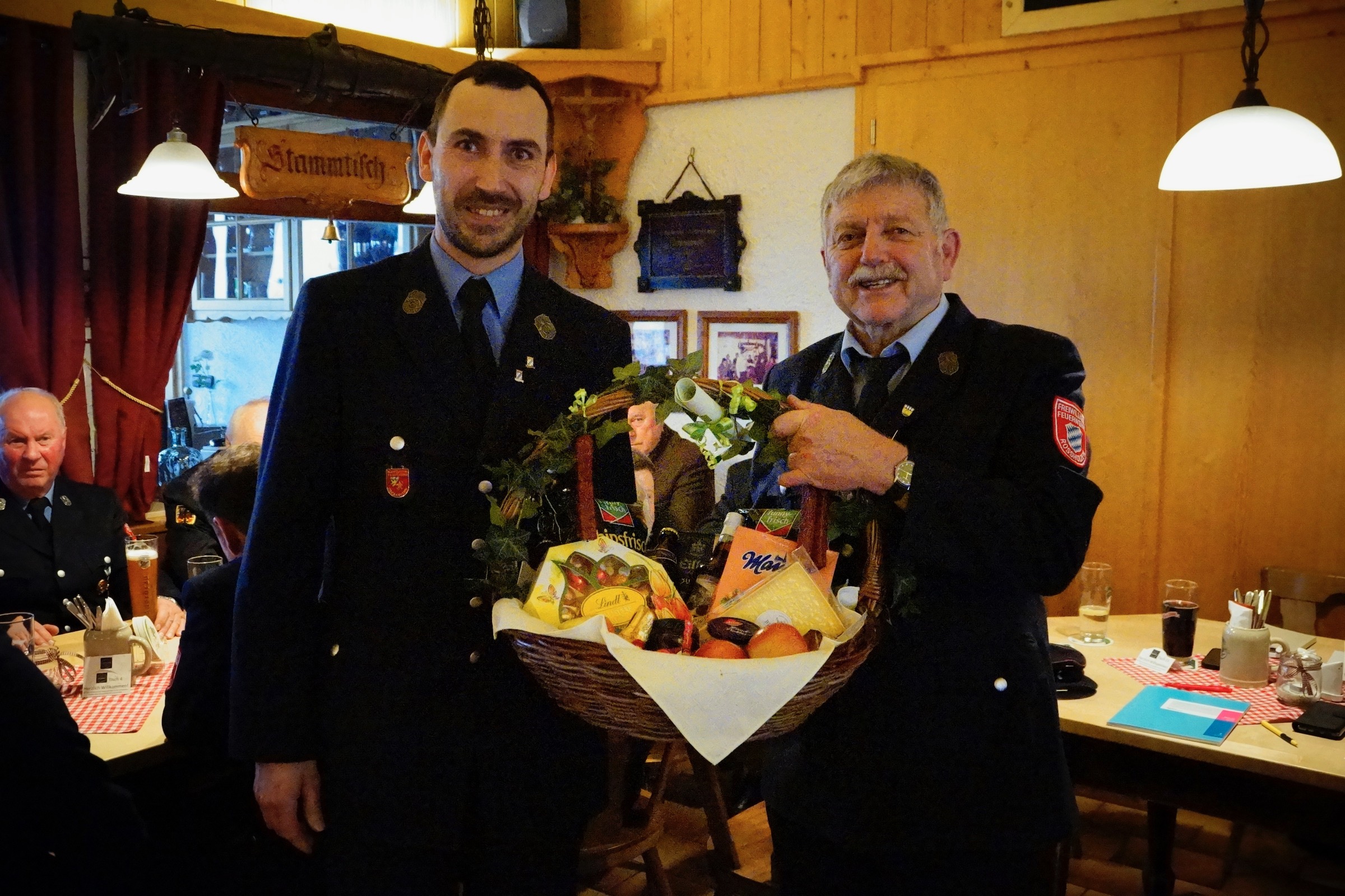 Anton Schober erhält Präsentkorb vom Verein.