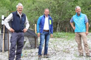 Richard Mergner, Vorsitzender des Bund Naturschutz in Bayern, der Bayerische Umweltminister Thorsten Glauber und Nationalparkleiter Dr. Roland Baier (v.l.) trafen sich anlässlich des Jubiläums „100 Jahre Naturschutzgebiet Königssee“ zu einer Festveranstaltung im Nationalpark Berchtesgaden.