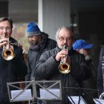 Es gab einen regen Dialog zwischen den Gästen aus Bayern und den Tempelhofer Bürgerinnen und Bürger. Mit dabei vom Volkspark Lichtenrade u.a. Birgit Helmlinger, Dieter Ganz, Manfred Könings, Waldemar Porzezinski und Thomas Moser. Auch der bekannte Berliner Holzkünstler, Horst Giese, hatte sich eingefunden. Er hat im Museumsdorf des Drechsler-Hofes, in Arrach, ein Holz-Kunst-Museum eingerichtet. Mit einer Vielzahl seiner Exponate aus Berlin bringt er dort die kulturelle Verbundenheit der Partnerregionen mit zum Ausdruck. Ebenfalls mit dabei der Vorsitzende des „Vereins der Bayern in Berlin e.V.“, Helmut Amberger. Er beglückwünschte die Partner zu ihrer langjährigen Freundschaftsbeziehung. Aus seiner Sicht bringt die Partnerschaft „Berlin Tempelhof – Bayerischer Wald“ die kulturelle Verbundenheit zwischen Bayern und Berlin mit zum Ausdruck, die auch der „Verein der Bayern in Berlin e.V.“ schon seit 143 Jahren erfolgreich pflegt. Zur stimmungsvollen Umrahmung des Jubiläums brachten die Gäste die Pearl-Brass-Musikanten aus dem Landkreis Cham mit. Unter der musikalische Leitung von Max Eibl sorgte das Brass-Quintett mit ihrer wohlklingenden Blasmusik für eine vorweihnachtliche Atmosphäre. Unterstützend hat sich der Lichtenrader „Haus- und Hofmusiker“ Lutz Fußangel, der mit dem Volkspark-Trägerverein eng verbunden ist, mit seinem Saxophon dazu gesellt.