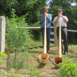 Musikalisch gestaltet wurde der Gottesdienst vom Blaibacher Dreigesang mit ihrer stimmungsvollen Waldlermesse. Dazu hatte ich die Ehre, zusammen mit meiner Mitspielerin Clara Sinell aus Berlin, den Jubiläumsgottesdienst mit kirchlichen Alphornklängen zu umrahmen. Nein, nicht nur im Alpenraum, auch in Norddeutschland hat sich in den letzten Jahren eine breite Alphorn-Szene entwickelt. Der stimmungsvolle Klang der Alphörner von der „Herz-Jesu“-Kapelle auf dem Ameisenberg, hinab ins „Tal“, zur Ameisenberg-Hütte, war für die Besucher der Jubiläumsfeier sicherlich ein besonderes Klangerlebnis.