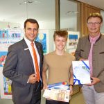 Fotos: Hötzelsperger – v. links: Geschäftsführer Christian Denk der Volksbank Raiffeisenbank in Prien am Chiemsee, 2. Landessieger Nirias T. aus Rosenheim und der 1. Bürgermeister von Prien, Jürgen Seifert