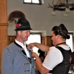 Sei es die Durchführung der Tanzproben, um Tänze einzustudieren für Auftritte, wie bei den Gartenfesten, bei MS-Kranken oder beim Maibaumaufstellen. Weiter, so Grass, organisiert er Gemeinschaftsaktionen fürs Ferienprogramm, fürs Zeltlager, für Ausflüge, zum Klopfersingen und auch zum Kirtahutschn. Wie Elfi Gras weiter lobend erwähnte, gehört auch die Organisation und Durchführung jährlicher Nikolausfeiern mit dem Einstudieren eines Krippenspieles zu seinen Aufgaben. Er nimmt sich Zeit, so die Vertreterin der Vorstandschaft der Bayerischen Trachtenjugend, für unzählige Zusatzproben fürs Vereins-, Gebiets- und Gaupreisplatteln, dies ganz nach dem Motto „Ohne Fleiß kein Preis“. Für seine über 23jährige aktive Jugendarbeit überreichte Elfi Grass dem Jugendleiter Hans Kaiser die Ehrenurkunde und die Ehrennadel in Gold der Bayerischen Trachtenjugend.