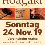 Am Sonntag, 24. November veranstaltet der Kreisjugendring Rosenheim wieder seinen traditionellen November- und Nachwuchs-Hoagascht im Vereinshaus vom Trachtenverein “Daxenwinkler” Atzing. Beginn ist um 13.30 Uhr, der Eintritt ist frei. Die Moderation übernimmt Benedikt Mies.