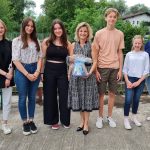 - v.l.Franziska Schröder, Marie Knoblauch, Angelina Mikulicic, MdB Daniela Ludwig, Finn Butenandt, Johanna Zeitz und Lehrerin Friederike Fimm.
