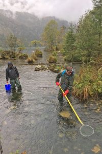 Bei der aktuellen Kontrollbefischung konnten Dr. Bernhard Gum und Dr. Leonhard Egg von der Fachberatung für Fischerei des Bezirks Oberbayern, die Königssee-Fischer Thomas und Kilian Amort sowie Nationalpark-Ranger Klaus Melde insgesamt 21 Jungfische aus drei Jahrgängen nachweisen. „Die größte Seeforelle stammt wahrscheinlich aus der Besatzaktion aus dem Jahr 2018 und stieg mit Beginn der Laichzeit wieder in den Saletbach auf“, freut sich Dr. Bernhard Gum über die ersten Erfolge des Wiederansiedlungsprojekts.