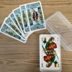 Zum Anderen ein »KARTENSPIEL SCHAFKOPF / TAROCK«  – Das traditionelle Kartenspiel ist auf der Kartenrückseite originell bedruckt mit dem »Oberbaierischen Kalender«-Titel, ebenfalls gezeichnet vom Raab Hias. Die Karten sind für Turniere geeignet, und auch eine Freude für gmiatliche Spielabende in der Familie. Die Qualität des Spiels ist von der Münchner Firma F. X. Schmid seit 1860 garantiert und bei »Vielspielern« beliebt. Die Karten mit 36 Blatt pro Spiel haben ein Kartenformat von 56 x 100 mm.