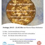 „Seit einem Jahr haben wir keine Treffs zur Erwachsenen-Bildung und auch keine Bibel-Abende, das wollen wir jetzt ändern, indem wir per Video-Konferenz zusammenkommen“ – so Pfarrer Hofstetter, der für diese Abende von 20.15 Uhr bis 21.45 Uhr schon vorgeplant hat. Jeder Abend beginnt mit einem Impuls, es folgt die Diskussion und den Abschluss bildet ein Gebet. Der nächste Abend ist am Freitag, 12. März, das Thema lautet „Geschwisterlichkeit als Prinzip“. Die folgenden Abende sind am Freitag, 26. März („Die menschlichen Werte sind nicht verhandelbar“) und am Freitag, 9. April („Die Stimme Gottes hilft uns voran“). Den Link zur Anmeldung und Teilnahme an der Videokonferenz erhalten die Interessierten bis einen Tag vor dem Kamingesprächs-Abend über die email-Adresse  khofstetter@ebmuc.de. Weitere Informationen gibt es beim Pfarramt Prien, Telefon 08051-1010.