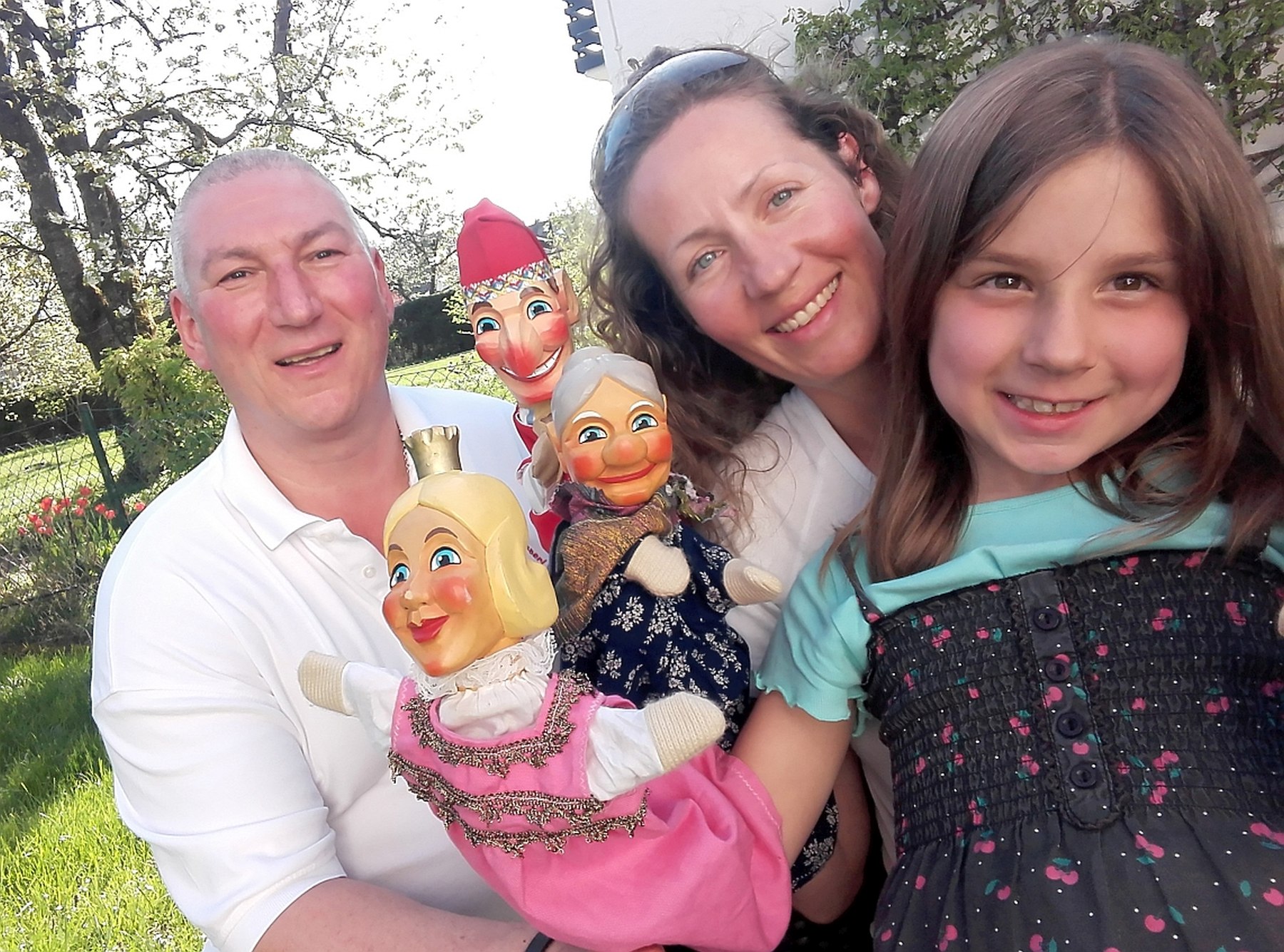 Das Chiemsee-Kasperl-Team (von links nach rechts): Stephan Mikat, Kathy Puchalla und Denise Mikat spielt am 24. Oktober im Chiemsee Saal in Prien.