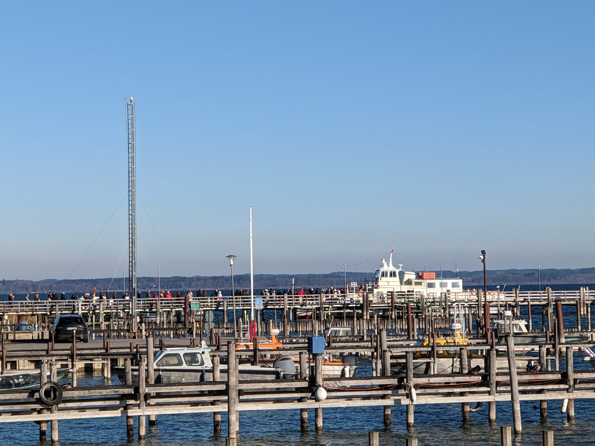 lange Warteschlange beim Schiff zur Fraueninsel
